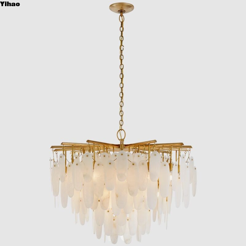 Waterfall Alabaster Stone Chandelier for Living and Dining Rooms - Unique Stone Lighting